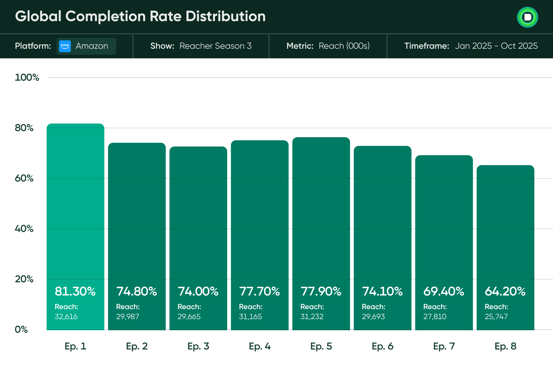 We collect viewing data from managed panels using a privacy-compliant app. Our data is subject to rigorous quality control and passes validation tests from studios and streamers.